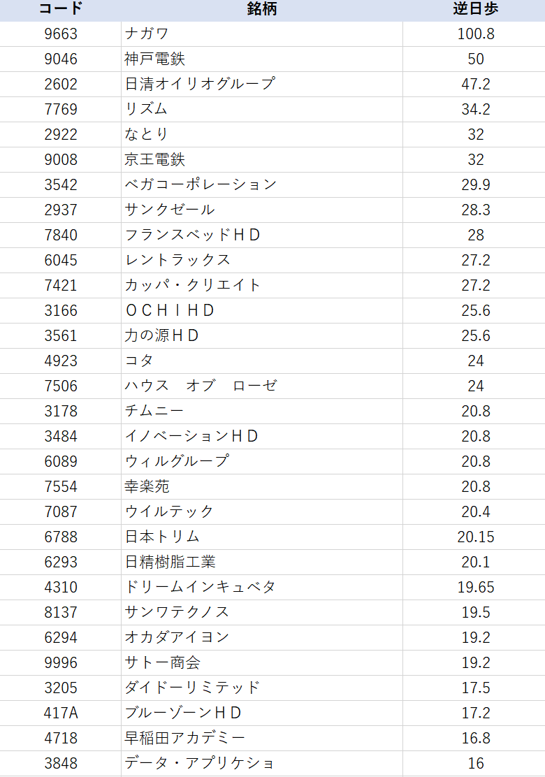 3月優待の逆日歩、大きい順30銘柄
